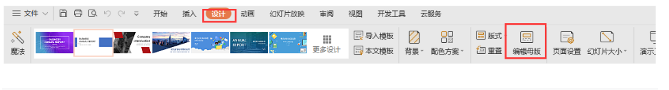 - 点击“视图” > “幻灯片母版”。界面切换到母版编辑区,主母版在顶部。